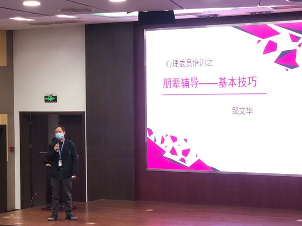 2022年12月13日下午,在我校报告厅东厅开展了2022-2023学年心理委员的第2次培训。邹文华老师主讲,2019-2022级班级心理委员参加了培训。