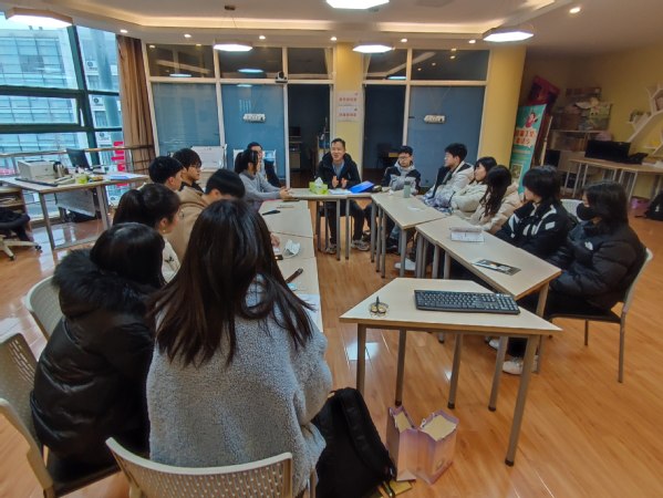 2023年2月7日下午,邹文华老师召集心理委员和心理社团的骨干们齐聚一堂,讨论如何开展朋辈辅导。
