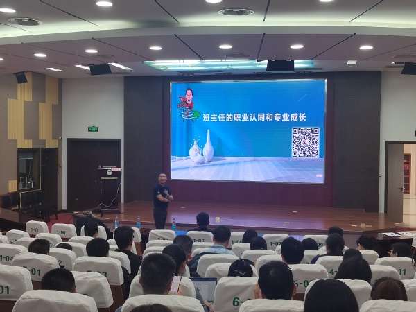 齐德才教授是全国知名德育专家,教育部中小学骨干教师远程培训项目课程主持专家,全国职业院校学生工作者联席会副理事长,国家教育行政学院、国家开放大学培训专家,国培计划明星讲师。讲座中,齐教授首先以一句“入职以来,你幸福吗?”为切入点,结合自身职业发展经历、身边发生的大量精选案例,通过生动、有趣、接地气的方式,讲解职业幸福、职业认同的重要性以及获取方法,然后引入到喜欢上自己的职业这一话题。引导全体老师思考人生的意义,得出“班主任因为热爱、因为投入,所以幸福”这个答案。最后,齐教授从专业能力-胜任力的关系,向班主任讲述了专业能力成长提升的重要性;又分别从专业阅读、专业写作和专业交往三个层面进行了细致的剖析。