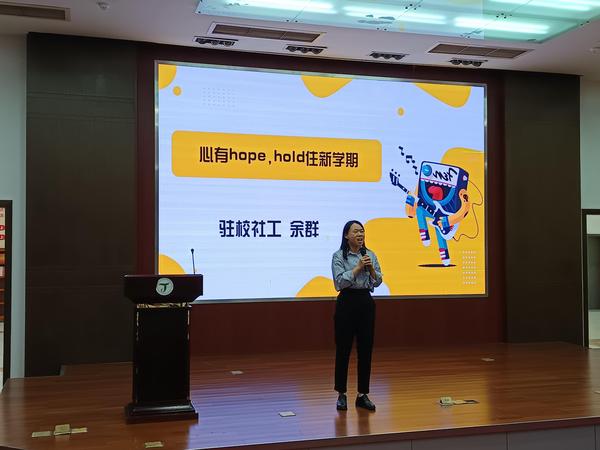 为贯彻落实习近平总书记提出的健康第一的教育理念,响应社会关切,提高青少年的心理健康水平,我校学生工作处于2024年9月至10月期间开展了“送心课进学院”的系列活动。本次活动中,学生工作处能量工坊发挥自身优势,结合各学院特点,为我校6个学院分别设计了主题为《心有hope, hold住新学期》的特色讲座。讲座分别由驻校社工余群老师和专职心理教师邹文华老师主讲,全体2024级新生参加。