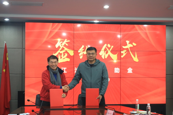 最后,江治华先生和戎成副校长分别代表捐赠方和受助方,进行捐赠签约交接,并合影留念。