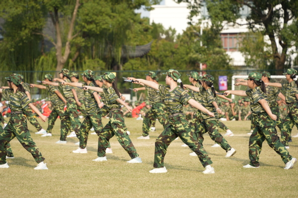 在庄严的升旗仪式结束后,随着学校党委书记占百春的一声令下,各班级在教官的带领下,以整齐的队列、标准的动作、响亮的口号,逐一展示了他们在军训期间所学到的各项技能。整个展示过程中,同学们昂首挺胸、整齐划一、英姿飒爽、意志坚定。在特色科目展示项目中,匕首操和军体拳展示,精彩纷呈,震撼的气势让全场热血沸腾!