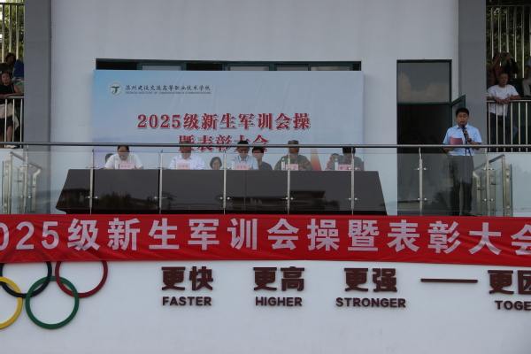 丹桂飘香秋意浓,金秋时节硕果丰。20251017日下午,我校隆重举行2025级新生军训会操暨表彰大会,出席本次大会的领导有苏州市吴中区人民武装部张伟教官,苏州建设交通高等职业技术学校党委书记占百春,党委副书记、校长万烨锋,副校长潘澔、谢永东,各二级学院院长,安全保卫处处长,全体教官、2025级全体新生及班主任。活动由学生工作处处长彭善涛主持。