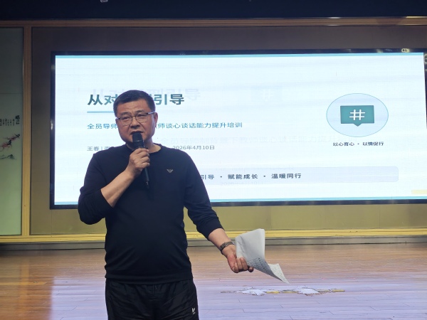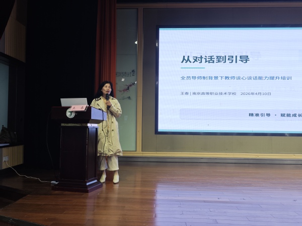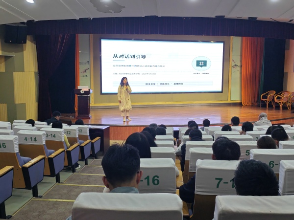 2026410日下午,我校在教育园校区报告厅成功举办题为《从对话到引导:全员导师制背景下教师谈心谈话能力提升培训》的心理健康专题讲座。本次讲座由江苏联合职业技术学院润心工作组专家、南京高等职业技术学校王春副教授主讲,全体教师参会。学生工作处处长彭善涛主持活动,校党委副书记、校长万烨锋,党委委员、副校长戎成,党委副书记、纪委书记汪丽丽出席活动。